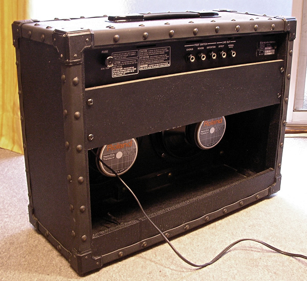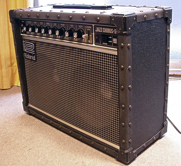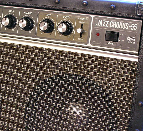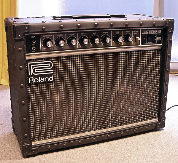 ローランドのJazz Chorus JCシリーズJC-55、現在も定番ギターアンプとして人気の高い製品。店主所有の1ユーザーもので部屋内使用のみの美品です。出品にあたりボリューム接点の洗浄、内部クリーニング、スピーカーの補修などを施しました。ノブ操作ガリもなく出力ビビリなし(フル10チェックしてます)、エフェクトなど正常動作しております。