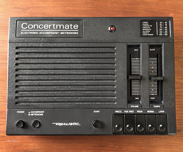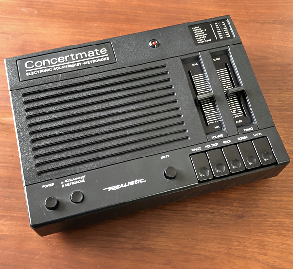 日本製の小型シンプルなビンテージリズムマシン。海外輸出向けだったと思われます。スピーカー内蔵&電池駆動可能なのでアンプラグドなライブや練習用に。5種のプリセットリズムはミックス可能。