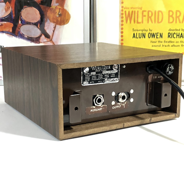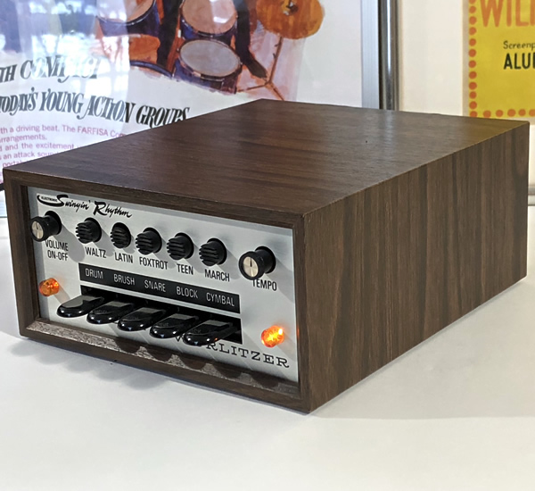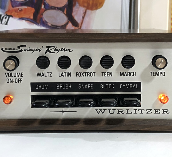 エレクトリックピアノ200Aなどで知られるWurlitzerのビンテージリズムマシン。リズムボタンがペダルタイプなのでリアルタイム演奏も容易です。デモ動画での残響音はアンプエフェクトではなく本体内蔵のサステイン回路によるもの。シンバルとスネアドラムの残響音が目立ってノイズぽくなっているのでそれぞれのサステインのかかりを少し抑えました(回路上の部品交換により)。またスネアロールボタンの出音がマシンガンぽくあまり実用的ではないためスネアドラム単発へモディファイしました。その他、標準アウト、汎用フットスイッチ対応に変更。