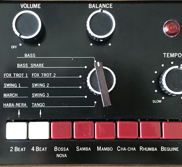 Ace Toneの代表的なプリセットリズム付きビンテージ・リズムマシン。本機は後期生産型でAce Toneではなく日本ハモンド社より販売されていました。基本のリズムパターン10種に2ビートと4ビートリズムそれぞれ6種のバリエーションを搭載、さまざまな演奏シーンに対応可能です。サンプリングではないアナログの暖かい音、リズムマシンの原点がここにあります。コンボオルガンとの相性GOOD!
