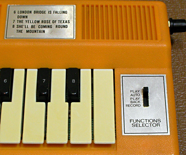 ※演奏鍵盤は白鍵のみ、モノフォニックです。黒鍵は曲セレクト用。