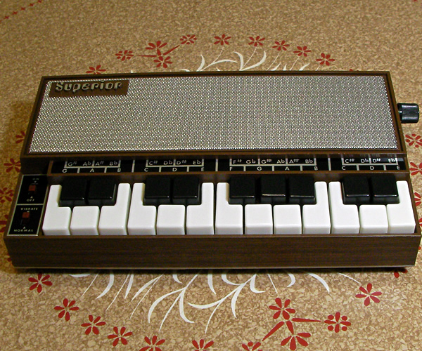 WOC 100の異ブランド同モデル。一見するとスタイロフォンぽいですが、こちらはペンではなくボタン式鍵盤で演奏します。両機ともボリュームノブを新規設置カスタマイズしました。WOCの方はボリューム調整幅小さめで外部出力には影響せず、Superiorは調整幅大きめにして外部出力にも影響させてます。さらに本機は