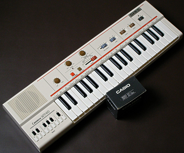 Casiotoneの名器MT-40再入荷です。デジタルレゲエのリズム、スレンテンは、このMT-40から生まれました。クールなベースシンクロ機能、感覚的に操作できるリズムフィルインなど本機1台でバックトラックの制作も可能です。故障の原因となりやすい劣化したスポンジ保護材は