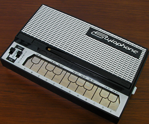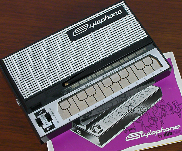 1968年〜1980年まで販売された金属製鍵盤プレートをペン(STYLUS)でスライドさせて演奏するスタイロフォンのオリジナル最後期モデル。アウトプットジャックからのみの出力を可能にするスピーカーOFFスイッチを内部にカスタマイズ設置しました。スタイロフォンコレクターの方にオススメです。イギリス製。