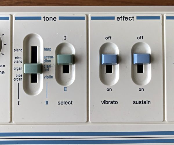 ・エフェクトスイッチ:sustain(off/on), vibrato(off/on)