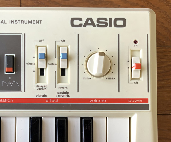 80年代ビンテージ・カシオトーンMT-65です。人気の高いスレンテンMT-40ほどではないですが、フロントパネルのデザイン、アナログシンセ的なモジュレーションボタン、4種のエフェクト、多彩な自動伴奏機能…、個人的には隠れた名機だと思います。