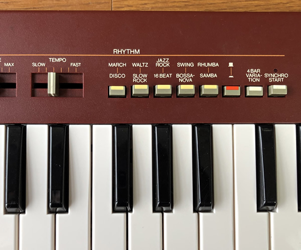 ・リズム(10種[5×2]):MARCH/DISCO, WALTZ/SLOW ROCK, JAZZ ROCK/16 BEAT, SWING/BOSSANOVA, RHUMBA/SAMBA
