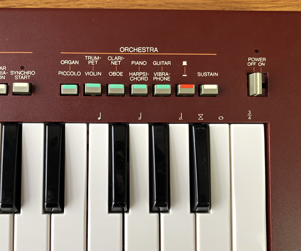 ・音色(10種[5×2]):ORGAN/PICCOLO, TRUMPET/VIOLIN, CLARINET/OBOE, PIANO/HARPSICHORD, GUITAR/VIBRAPHONE