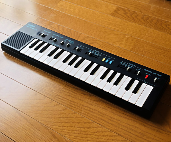 ヤマハがカシオトーンに対抗して1980年にリリース開始したポータサウンドシリーズ、エントリーモデルPS-200です。細身のボディ、シンプルに整列されたコントロール部などグッドデザインなミニキーボードです。