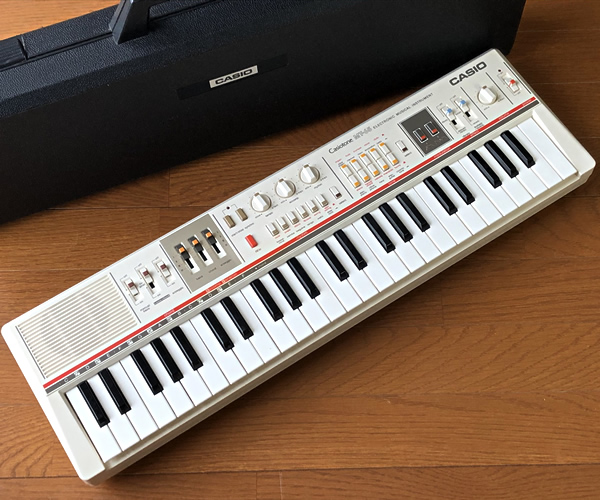 80年代ビンテージ・カシオトーンMT-65です。人気の高いスレンテンMT-40ほどではないですが、フロントパネルのデザイン、アナログシンセ的なモジュレーションボタン、4種のエフェクト、多彩な自動伴奏機能…、個人的には隠れた名機だと思います。