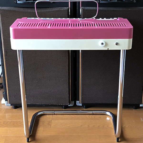 イタリアAntonelli社のビンテージトイオルガン。今回新たに電源ライトとビブラートONライトなどを設置しました。光り物(?)があると楽器感が増しますよね。また各キーに調整用トリマを設置したことでピッチもほぼジャスト。ベース鍵盤とトーン鍵盤はモノフォニックで和音は演奏できませんがベース弾きながらのメロディ演奏は可能です。