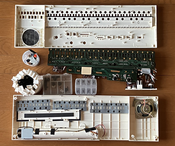 ・音色:22種(electric piano/banjo/guitar/harpsichord/xylophone/celesta/glockenspiel/organ/accordion/pipe organ/oriental pipe/brass/cello/synth fuzz/violin/trumpet/funny fuzz/st. ensemble/clarinet/flute/recorder/folk flute)