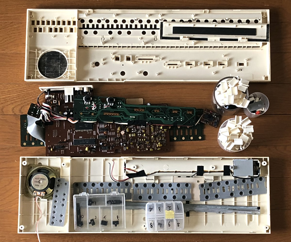 ・音色:22種(electric piano/banjo/guitar/harpsichord/xylophone/celesta/glockenspiel/organ/accordion/pipe organ/oriental pipe/brass/cello/synth fuzz/violin/trumpet/funny fuzz/st. ensemble/clarinet/flute/recorder/folk flute)