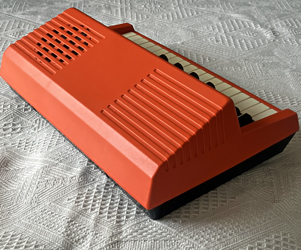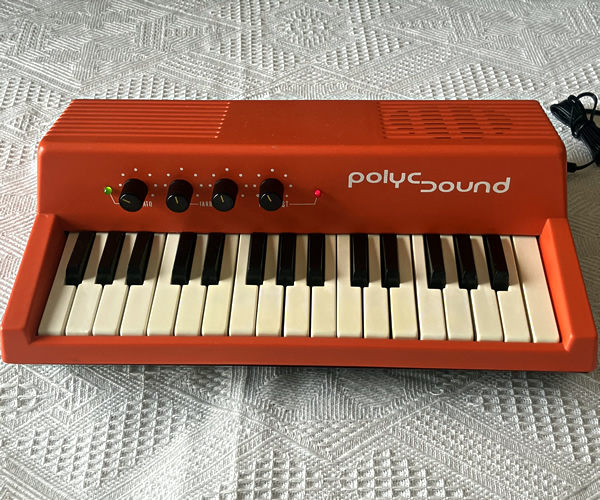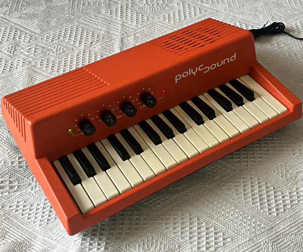 Slovak Organ Deo PolySound 旧チェコスロバキアのミニオルガンです。使われている電子部品から察すると80年代ごろの製品でしょうか。ポリフォニック発音、ビブラートコントロール、そして基本16'音色に2種類のオクターブ(4',8')音色も付加できるなど本格的なトランジスタオルガン仕様。鍵盤がバネ式のためグリスなどはできませんが、アウトプットジャックを新設モディファイしましたので外部エフェクトをかけたり大音量での演奏も可能です。オレンジトップ&ブラックベースのルックスもグッド!ノイズもほとんどありません。