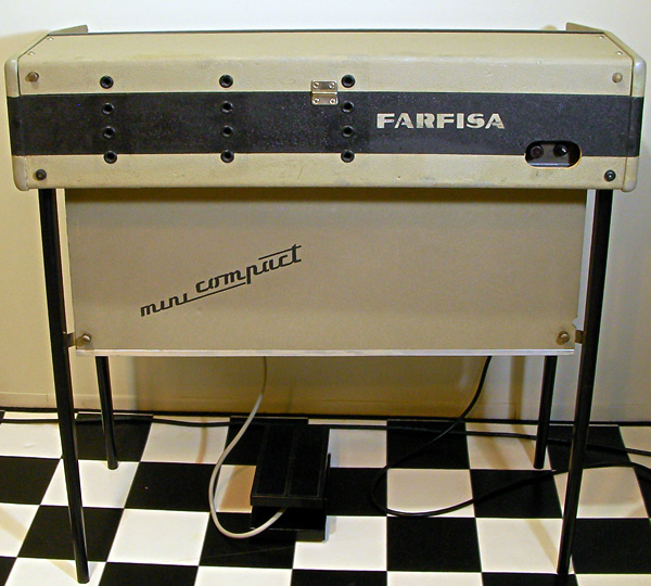 1966年〜68年頃に販売されていたイタリア製コンボオルガン。Farfisa Mini Compactの2ndバージョンで(正式名称Mini Deluxe Compact)、音をブーストできる