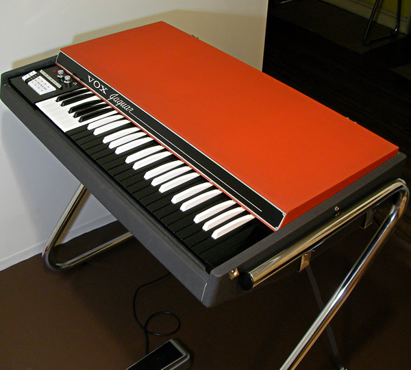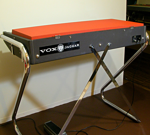 1967年末〜68年に販売されていたVOX Jaguar普及モデルですが、その中でもフェイスプレートのJaguarロゴが縦長シャープな後期生産型です。Zレッグ、ボリュームペダル、収納ケース付属のフルセット!何台かJaguar入荷しましたがペダル付は初!これだけ状態のいいペダル付は非常にレアです。マニアックな話になりますが、Zレッグ補助交差スタンド取付穴2カ所以外はすべてオリジナルネジのまま、錆取りもしてますので外装は最高の仕上げとなってます。もちろん、サウンドもJaguar独特の60年代コンボオルガンサウンド!ライブ即戦力として、そしてコレククタブルアイテムとしても満足いただける一台です。お問合せお待ちしております。