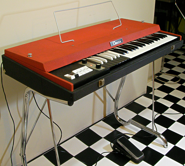一瞬、VOX Jaguarか?と思ってしまうほど外観そっくりなGEM Model-Pオルガンです。よく見ると鍵盤の配色が逆であったりノブ位置が違ったりスタンドが底面取付けタイプだったり異なる部分も多々あります。サイズもJaguarよりコンパクトですね。ただ、内部構造もそっくりなのでOEMもしくはコピー(リスペクト?)モデルなのかもしれません。肝心のサウンドですがJaguarの音色を少しマイルドに、そして音圧をパワーアップした感じでしょうか。レアな一台、ボリュームペダルも付属したフルセットです!