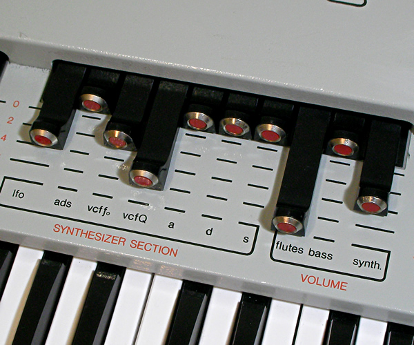 旧ソ連ELECTRONIKA社1991年製のアナログシンセ内蔵のコンボオルガンです。1991年と言えばソ連崩壊の年。社会が混乱しながらもこんなクールデザインなオルガンを造ってしまうセンス!東欧もそうですがシンプルかつ機能美を追求したデザインは独特のものがありますね。このEM141は、オルガンのフィート音色はもちろん、シンセパラメーター、エフェクト、パーカッション、ボリュームなどすべてドローバーでコントロール、感覚的に操作可能です。