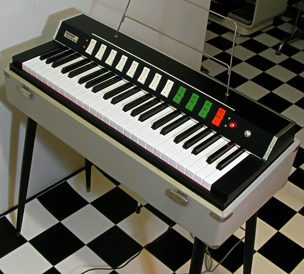 ネオン管発振式を採用した超レア・コンボオルガンアコーディオン、ハーモニカメーカーとして知られるドイツHohner社が1960年代末に発売したコンボオルガン。発音方式にネオンランプを使ったネオン管発振式を採用。重さ約19kgで20kg超えのVOXやFarifisaに比べるとよりポータブル化を実現してます。またビブラートの効き(depth)を3段階調整可能なKneeレバー装備。木製の家具調スタンドは老舗楽器メーカーならではですね。40数年前のオルガンとは思えない程、外装内部ともグッドコンディションです。レッドツェッペリンのジョンポールジョーンズ氏が1972年〜73年にかけて初期モデル30を使用していました。ボディは木製、トップカバーは金属製。