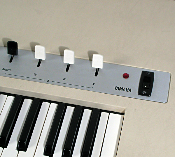 ヤマハ・コンボオルガンの代表格YC-10、レアカラーivoryです。初期型の特徴である本革ハンドル、レバーヘッドは後期タイプ、音源基板にはチューニング可のコイル式部品が採用(後期はIC)、オクターブ発生ICは初期型(丸型)でも後期型(汎用品)でもなくヤマハオリジナルの長方形ICが採用されています。初期から後期にかけての製品…つまり中期型ということでしょうか。中古市場でもほとんど見かけないivory、この機会に是非!