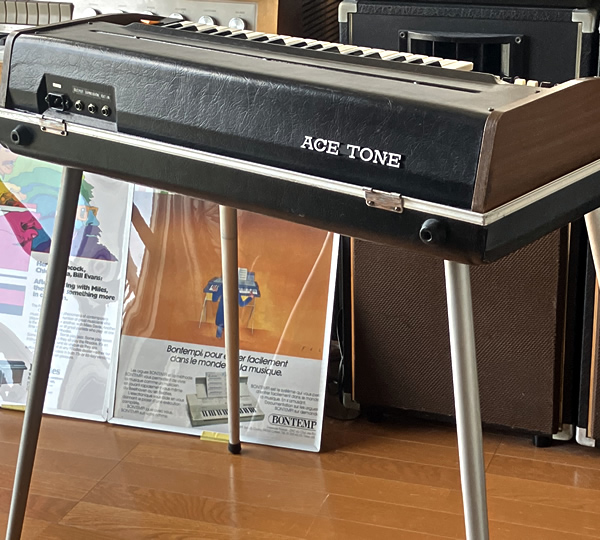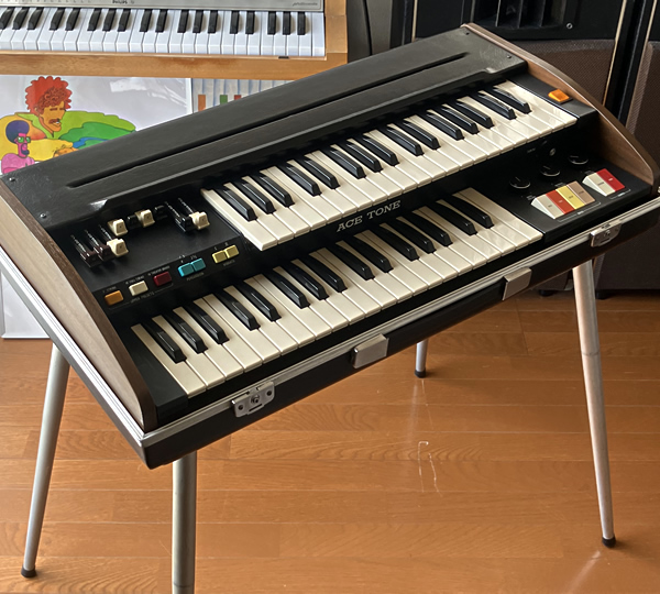 Ace Tone最後期のコンボオルガン、コンパクトサイズのベビーダブル鍵盤X-3です。アッパー鍵盤部に多列接点&9種ドローバー装備し、ハモンドライクなリッチなオルガンサウンドを実現。またデザイン的にもハモンドオルガンを意識した木製の両サイド部等々、B3が大きすぎて置けない方でもハモンド気分が味わえます。