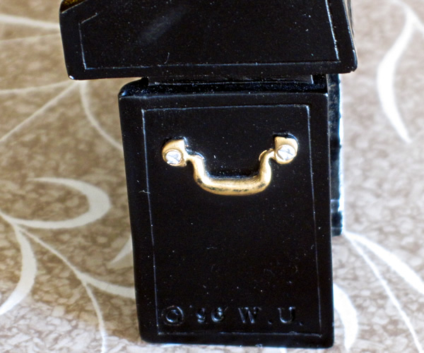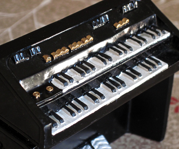 ハモンドオルガン風の陶磁器製オブジェです。2段鍵盤ですがペダルが3つあったりするのでハモンドを完全コピーしたものではないようです。あくまでもハモンド風ですね。リアにはゴールド文字で「SUPER SYSTEM」そしてシルバー文字で大きく「Soul★」と書いてあります。きっとスライストーンやバーニー・ウォーレルあたりのソウルプレイヤーが弾いてるイメージでしょうか。製造元不明ですが右サイドに(C)96 W.U.というコピーライト表示あり。オルガンプレイヤーやソウルミュージック好きな方へのプレゼントに!