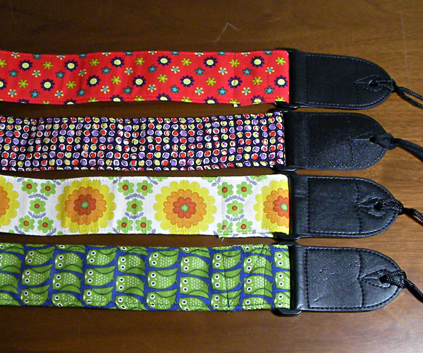 ポップデザインなストラップ4種入荷しました。柄部分は作家さんのハンドメイド!片側にひもがついているのでアコースティックギターのヘッドに取り付けることも可能です。