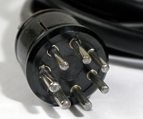 ヨーロッパ仕様(10ピン)の接続ジャックを持つコンボオルガンFarfisa Compact Duoや電気アコーディオンFarfisa Transicordと、アメリカ仕様(7ピン)の接続ジャックを持つ電源供給&リバーブユニットFarfisa F/AR、又はスピーカー内蔵アンプFarfisa TR60をつなげる専用ケーブルです。